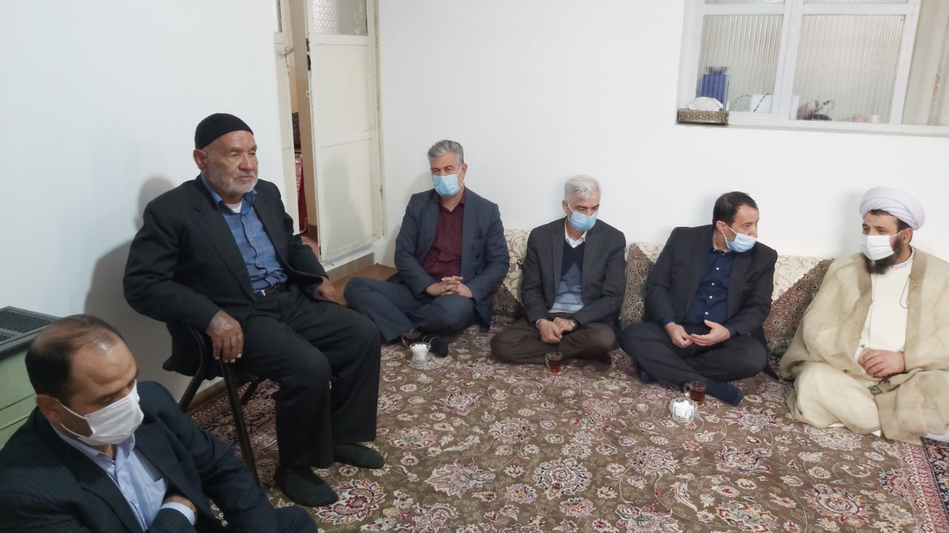 دیدار جهانمیرزایی فرماندار به اتفاق حجت الاسلام و المسلمین نیشابوری امام جمعه و تعدادی از مسئولین شهرستان با خانواده معظم شهید خرم نیا در روستای نورآباد