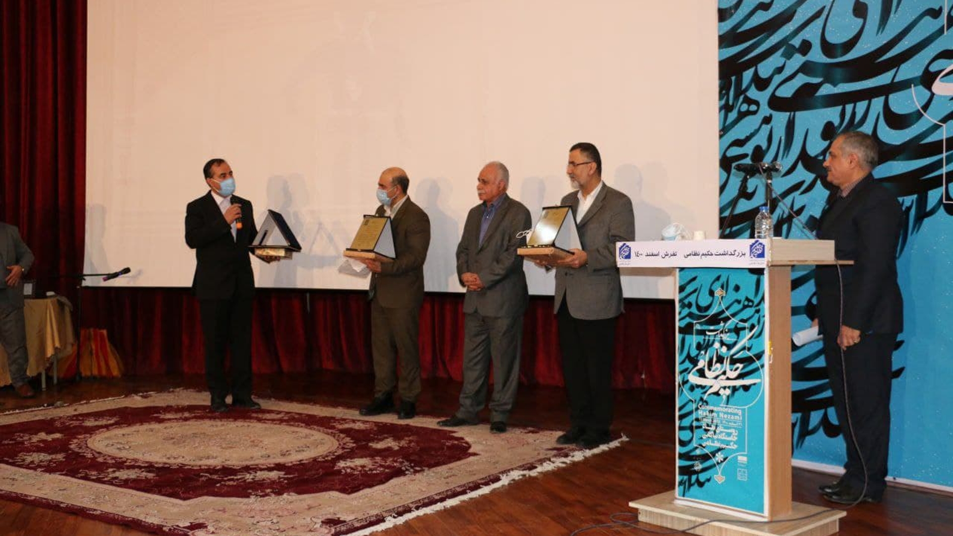 تقدیم لوح سپاس و تقدیر دکتر حجت ا...ایوبی دبیرکل یونسکو از عبدالرضا حاج علی بیگی فرماندار شهرستان تفرش بابت مرمت و بازسازی منزل حکیم نظامی در روستای طاد و برنامه ریزی و برگزاری مراسم نکوداشت حکیم نظامی در تفرش و سایر نقاط کشور.