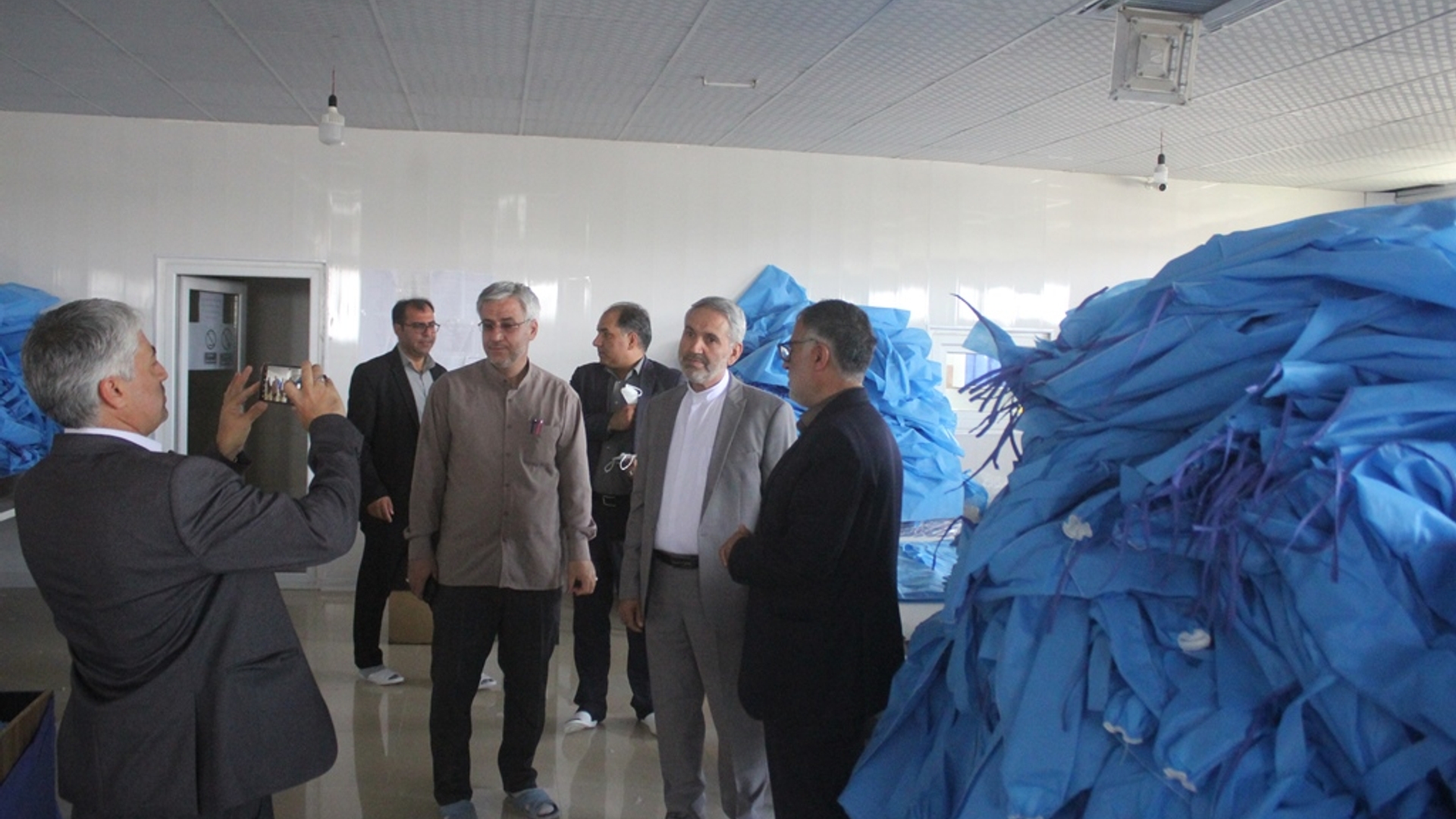 فرماندار و نماینده مردم خمین در مجلس از کارگاه تولید لباس بیمارستانی در روستای فرنق بازدید کردند