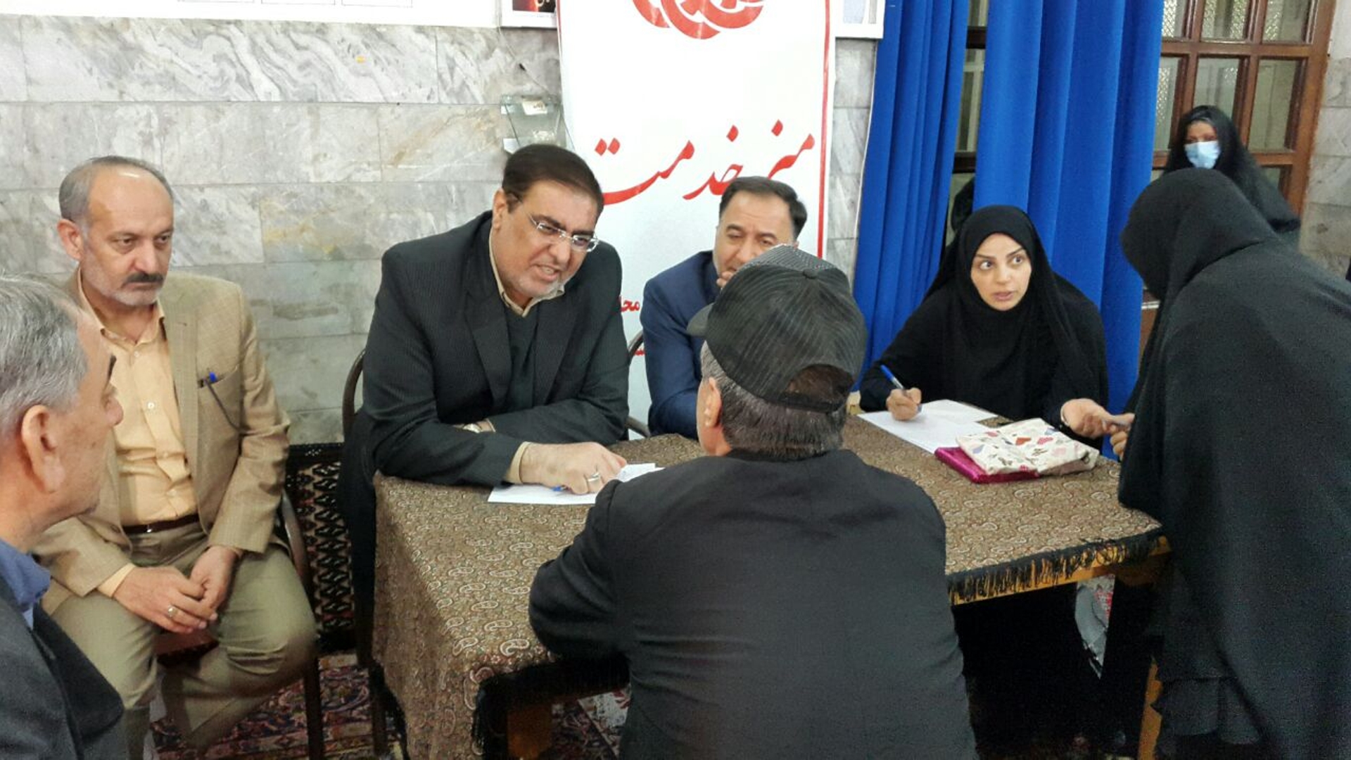 🔹پس از اقامه نماز و صرف افطاری مختصر در کنار تعدادی از مددجویان بهزیستی، میز خدمت برپا شد و مشکلات و مسائل تعداد زیادی از مددجویان عزیز ، استماع شد.
