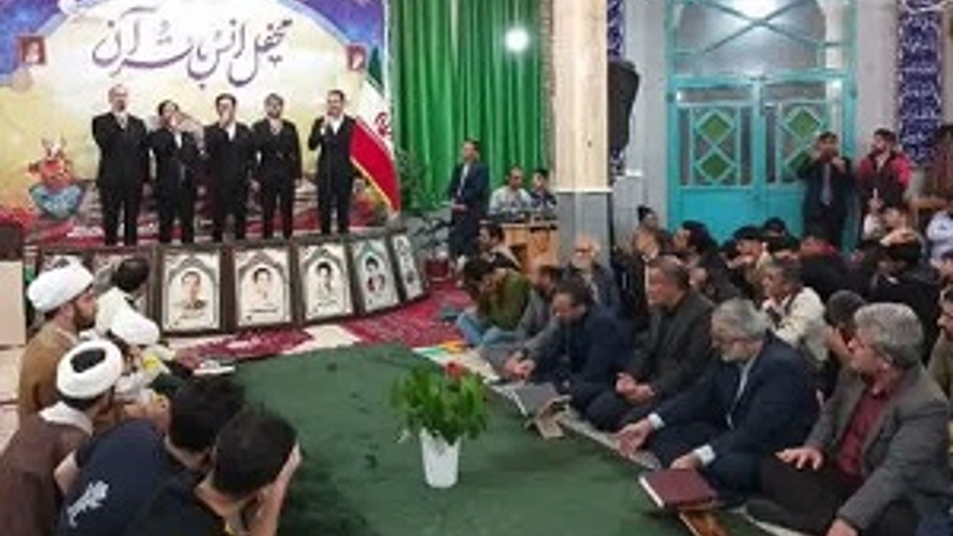 🔹 در ادامه این میز خدمت، مسئولین در مراسم محفل انس با قرآن ماه مبارک رمضان این شهر نیز که با حضور قاریان ممتاز بین المللی و کشوری برگزار شد، شرکت نمودند.