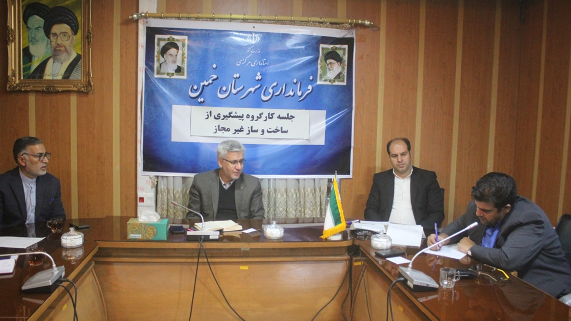 جلسه کمیسیون پیشگیری از ساخت و ساز غیر مجاز در شهرستان خمین به ریاست حمید کمانکش فرماندار شهرستان و با حضور براتی زاده معاون برنامه ریزی و امور عمرانی فرماندار و تعدادی از مسئولان و کارشناسان دستگاه های اجرایی مرتبط در محل فرمانداری برگزار شد .