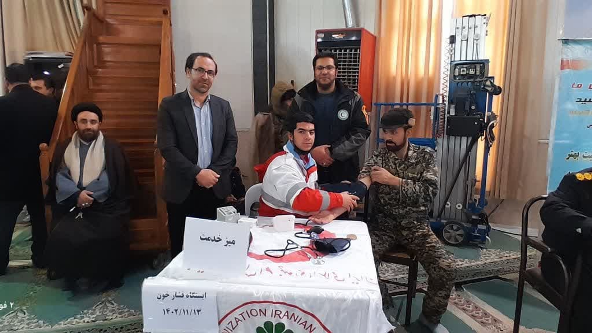 برپایی ایستگاه سلامت و میزخدمت در مصلی ولایت به مناسبت دهه مبارک فجر با حضور مسئولین و کارشناسان شبکه و مرکز بهداشت و جمعیت هلالاحمر شهرستان تفرش 🔹در این ایستگاه سنجش فشار خون، مشاوره تغذیه سالم و پيشگيري از سرطان انجام و در میزخدمت به بررسی و پیگیری مشکلات نمازگزاران پرداخته شد.