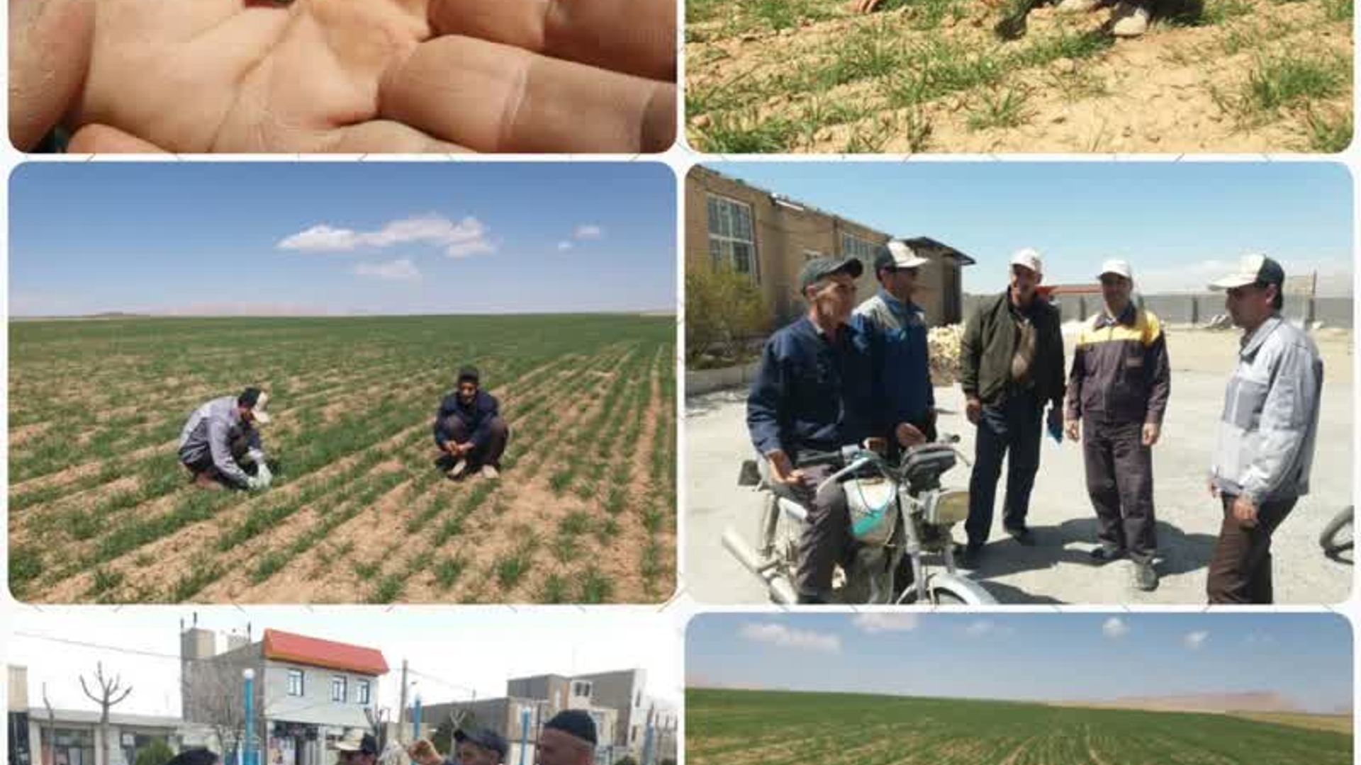 بازدید از مزارع گندم دیم تحت پوشش طرح جهش تولید در دیمزارها جهت پایش تراکم علفهای هرز و آفت سن غلات