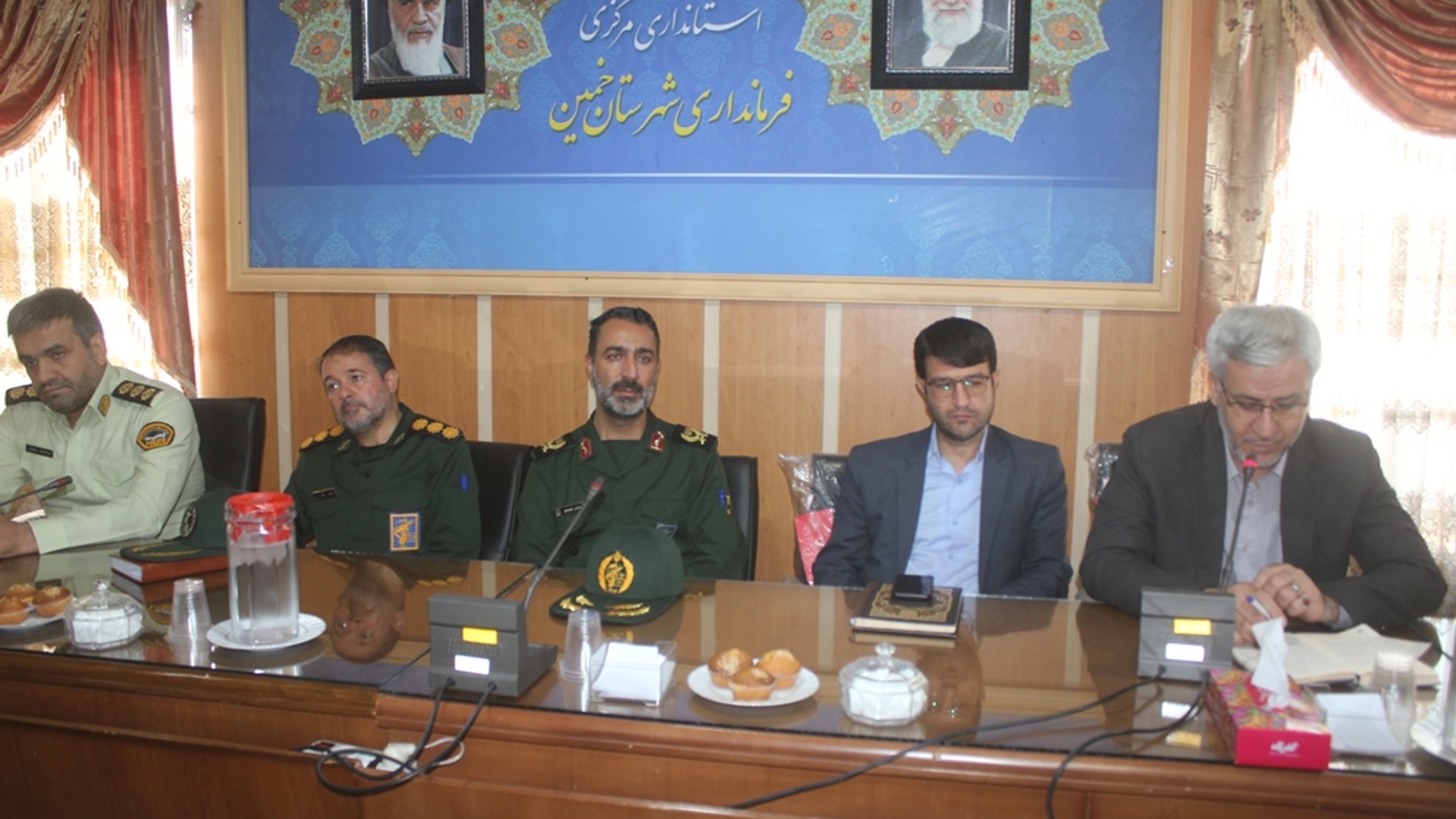 جلسه شورای اداری شهرستان خمین به ریاست حمید کمانکش فرماندار شهرستان و با حضور سردار مرتضی عمو مهدی فرمانده سپاه روح اله استان ، اعضای شورای تامین ، شاکرمی رئیس دادگستری شهرستان ، انصاری معاون سیاسی ، امنیتی و اجتماعی فرماندار ، محمدی بخشدار کمره ، شهردار و رئیس شورای شهر قورچی باشی و اعضای شورای اداری شهرستان در محل سالن اجتماعات فرمانداری برگزار شد .