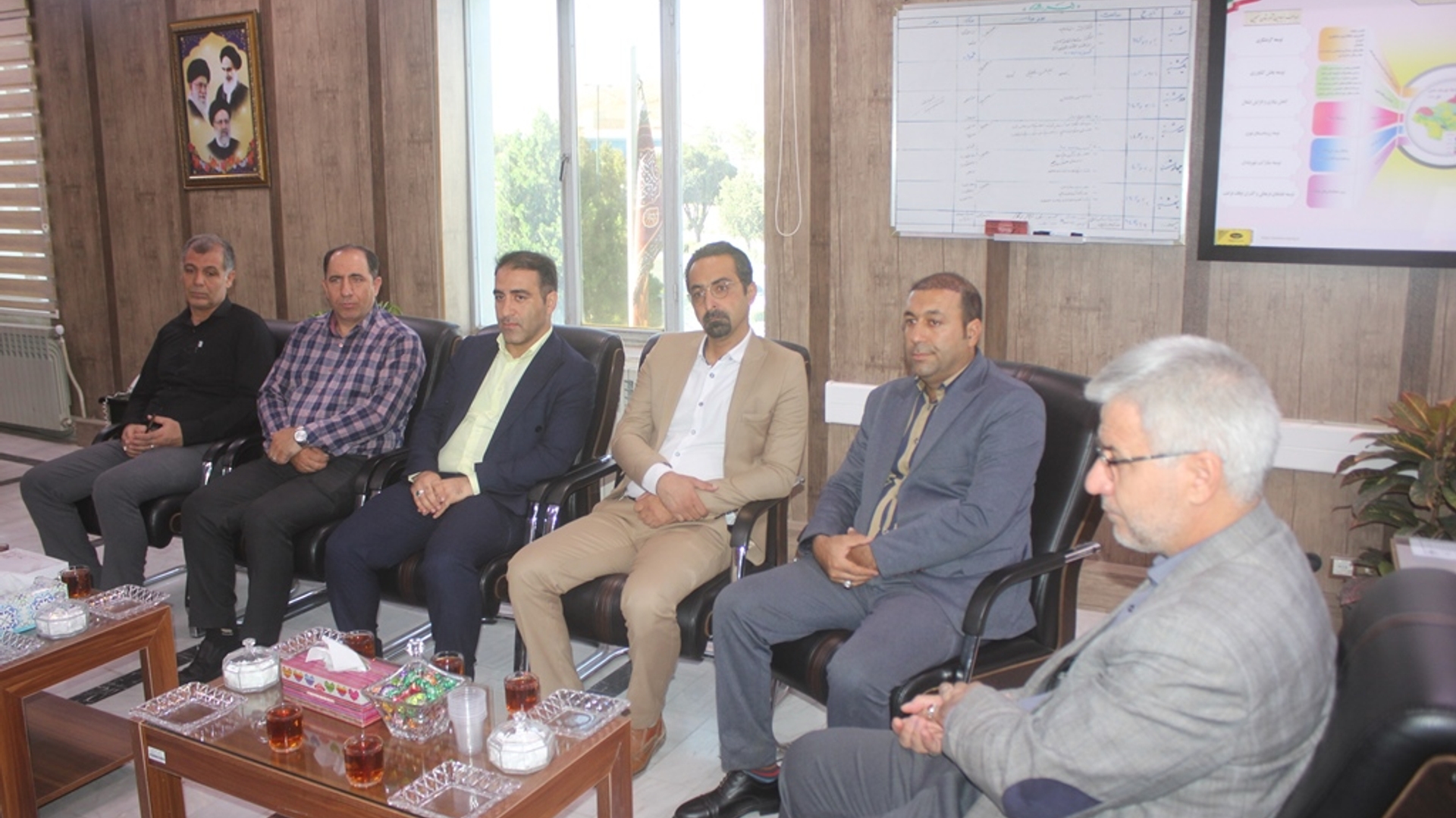 شهردار و شورای شهر خمین با حضور در محل دفتر فرماندار ، ضمن تبریک هفته دولت ، گزارشی از عملکرد شهرداری و شورای شهر در 5 ماهه اول سال جاری ارائه نمودند و هم چنین در خصوص لزوم اتخاذ تمهیدات لازم جهت ارتقای شاخص های اقتصادی ، اجتماعی و فرهنگی شهر ، ارتقای مبلمان شهری و زیباسازی سطح شهر و توجه بیشتر به محلات محروم و حاشیه ای نیز بحث و تبادل نظر کردند.
