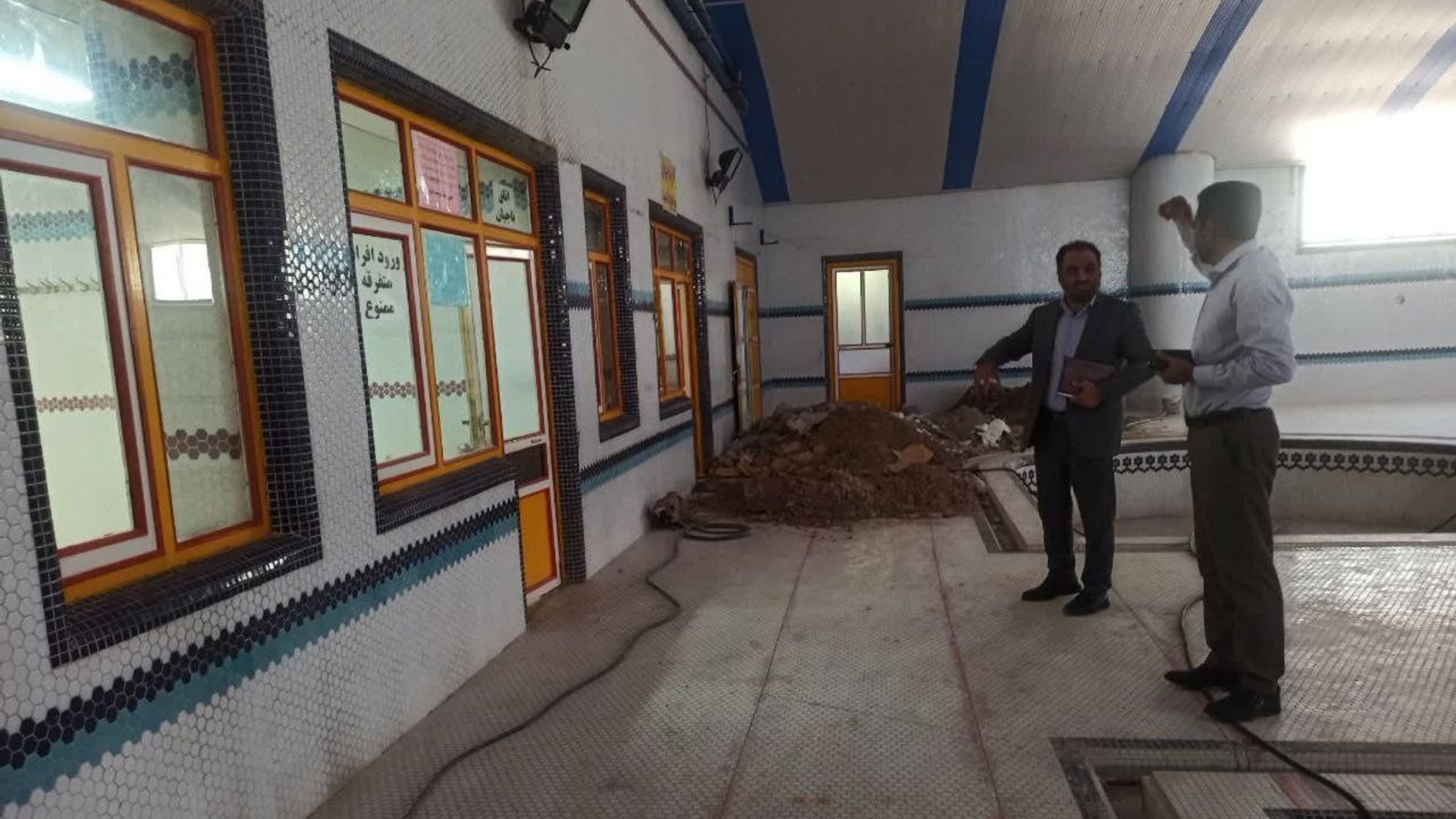 به گزارش روابط عمومی فرمانداری شهرستان محلات دکتر ترکیان فرماندار شهرستان به اتفاق جعفری رئیس اداره ورزش و جوانان شهرستان ضمن حضور در محل استخر شهدای فتح المبین از نزدیک، روند تعمیرات استخر را رصد کرد.