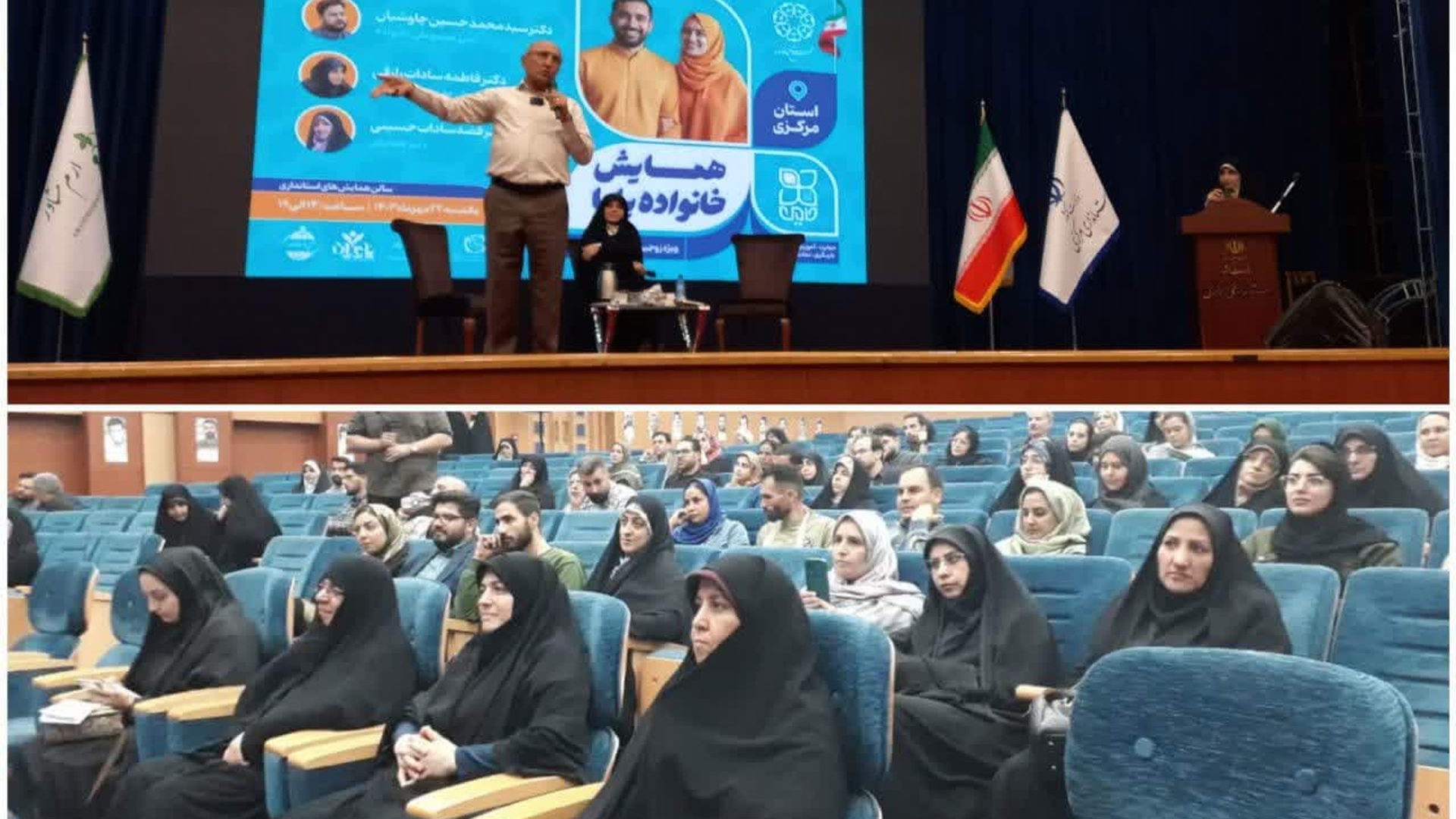 همایش خانواده پایا با هدف کاهش نرخ طلاق و تحکیم خانواده به همت ستاد مردمی جمعیت ،فرمانداری و شهرداری اراک با حضورمفتح زاده مدیر کل امور زنان و خانواده و اساتید مطرح کشوری همچون دکتر شاهین فرهنگ ،دکترفاطمه سادات رازقی ،دکتر فضه سادات حسینی و دکتر سید محمد حسین چاوشیان با جامعه هدف زوج های جوانی که کمتر از ۵ سال از زمان ازدواج ایشان می گذشت ؛در محل سالن پیامبر اعظم (ص) استانداری برگزار گردید . #خانواده_پایا یکشنبه ۲۲مهر۱۴۰۳