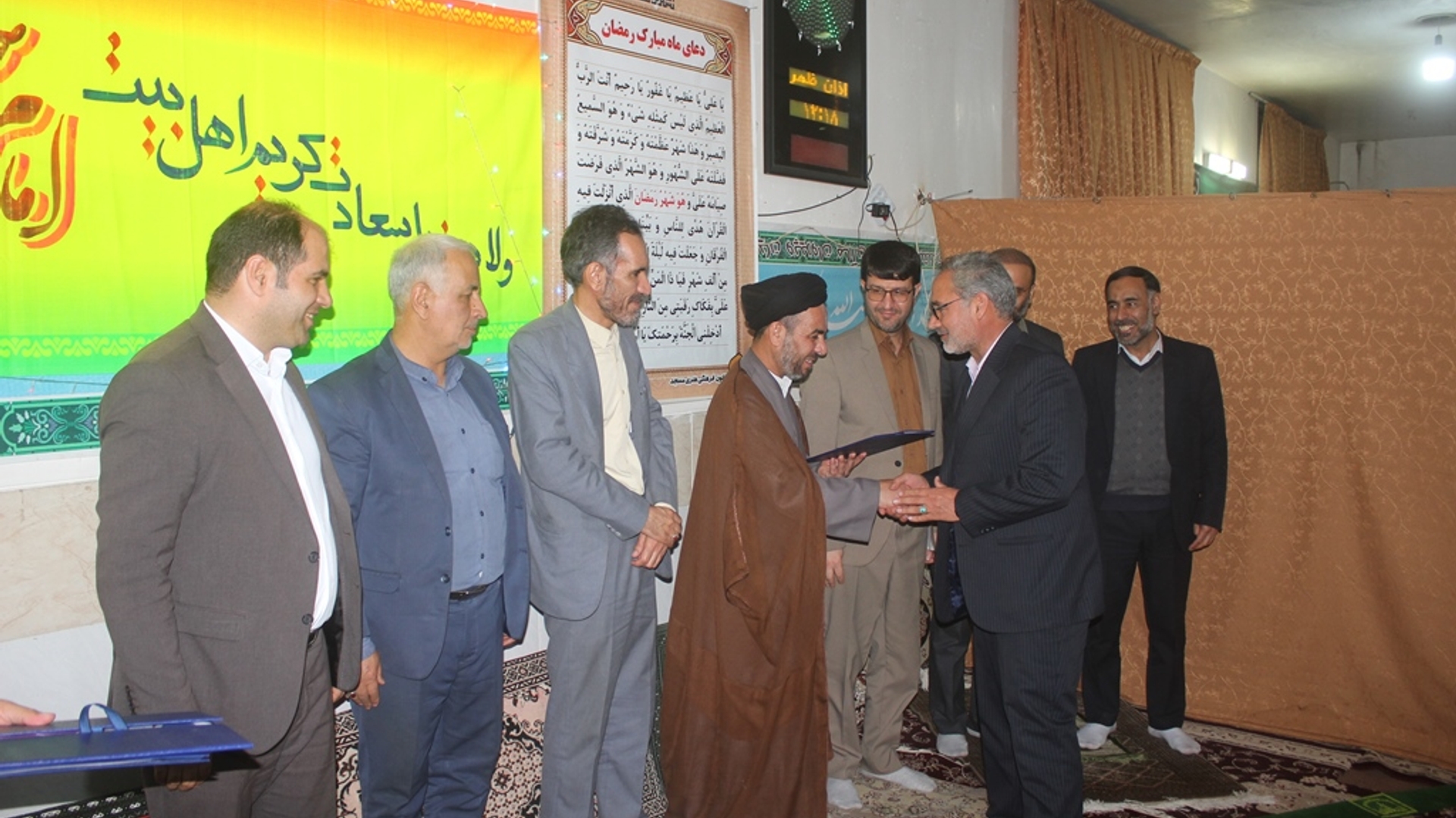 بمناسبت فرارسیدن 15 رمضان ، سالروز ولادت کریم اهل بیت ، حضرت امام حسن مجتبی (ع) ، مراسم گرامیداشت ولادت آنحضرت با حضور وحید براتی زاده فرماندار شهرستان ، حجت الاسلام والمسلمین میرصادقی امام جمعه خمین ، بیات نماینده مردم شریف خمین در مجلس شورای اسلامی ، شاکرمی رئیس دادگستری ، گمیزی دادستان عمومی و انقلاب خمین ، محمدی بخشدار کمره ، معاونین فرماندار ، شهردار و رئیس و اعضای شورای شهر قورچی باشی و خمین و جمعی از مردم و خانواده هیا معظم شهدای قورچی باشی و بخش کمره در محل حسینه شهدای این شهر برگزار شد .